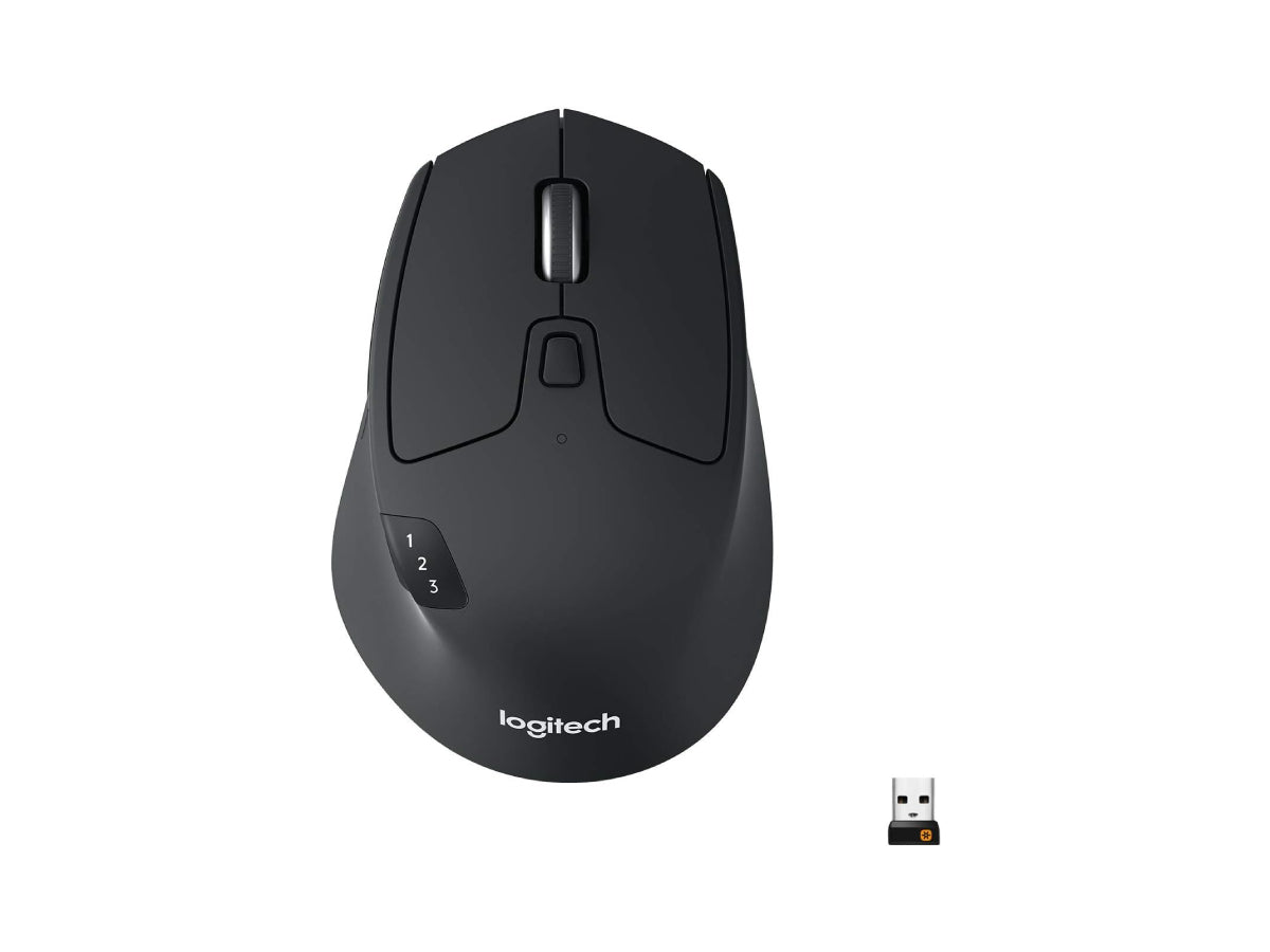 • Flexible and Compatible: M720 is compatible with computers, laptops and tablets -Windows®, macOS, Chrome OS™, Linux®5Customization of the buttons via Logi Options+ is not possible on Linux., and iPadOS, it’s ready to integrate with your work setup, regardless of device or operating system. Connect your way, via either Bluetooth® wireless technology or the wireless Logitech Unifying receiver, which lets you connect up to 6 compatible Logitech peripherals with only one USB receiver.
