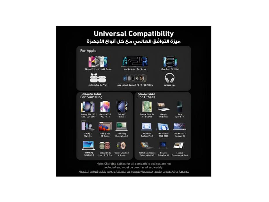 Universal Compatibility Works seamlessly with Apple, Android, Windows, and USB-C PD devices — from iPhones to gaming laptops.