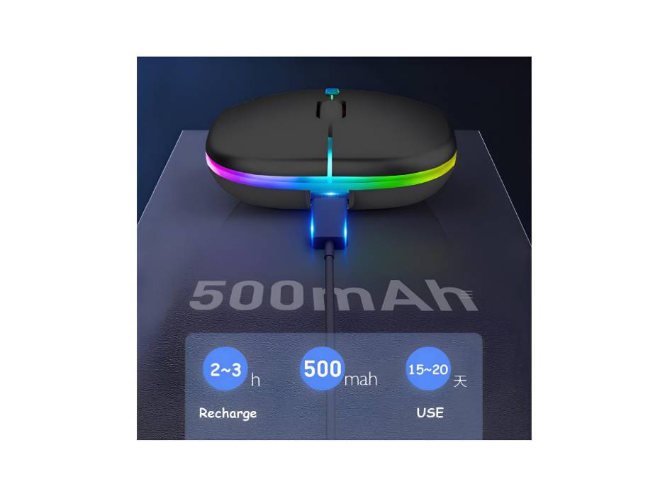 ANYOUI Wireless Bluetooth Mouse, LED Slim Dual Mode (Bluetooth 5.1 + USB) 2.4GHz Rechargeable Silent Bluetooth Wireless Mouse