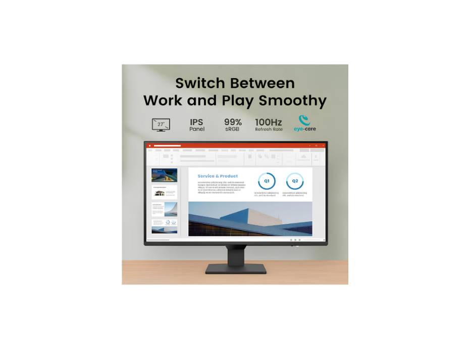 100Hz Refresh Rate Smoother visuals and reduced motion blur—ideal for casual gaming and fluid scrolling.