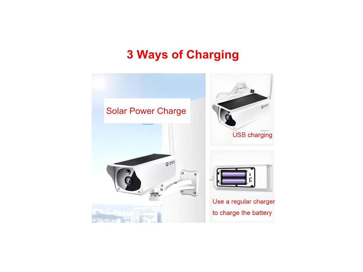 • 100% Solar Powered-Eco-friendly solar panel keeps your camera charged throughout the day—no external power source or wiring required.