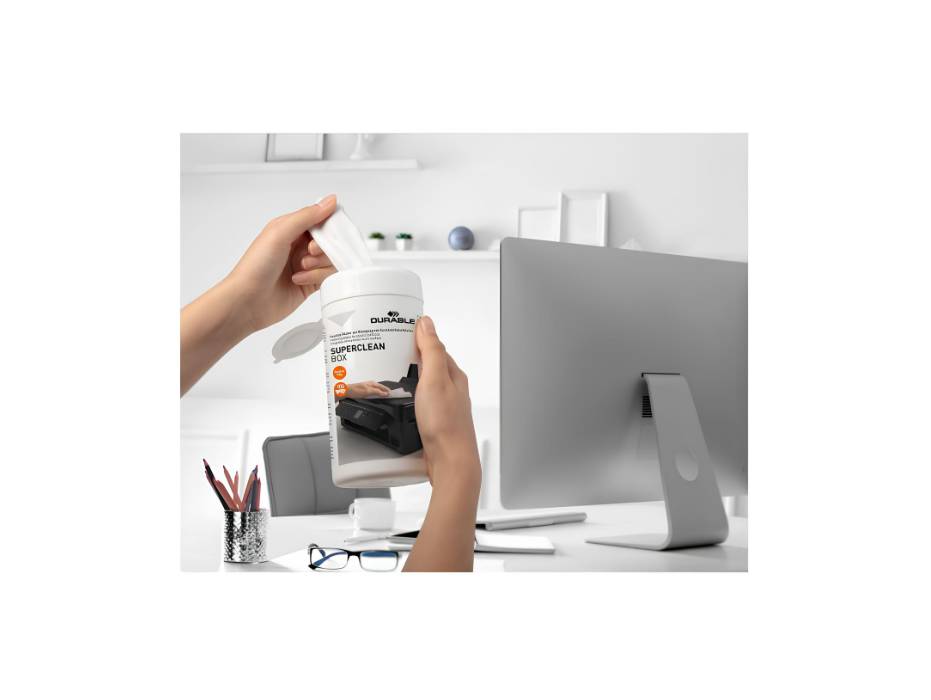 Durable Superclean Hard Surface Cleaning Wipes come in a convenient tub of 100, designed for effective and efficient cleaning of various hard surfaces. These wipes offer strong cleaning power to remove dirt, grime, and bacteria, ensuring hygienic and spotless results. Ideal for professional and everyday use, they provide a reliable solution for maintaining cleanliness in homes, offices, and commercial spaces. Their durable texture allows thorough scrubbing without tearing, making them a practical choice for consistent surface care.
