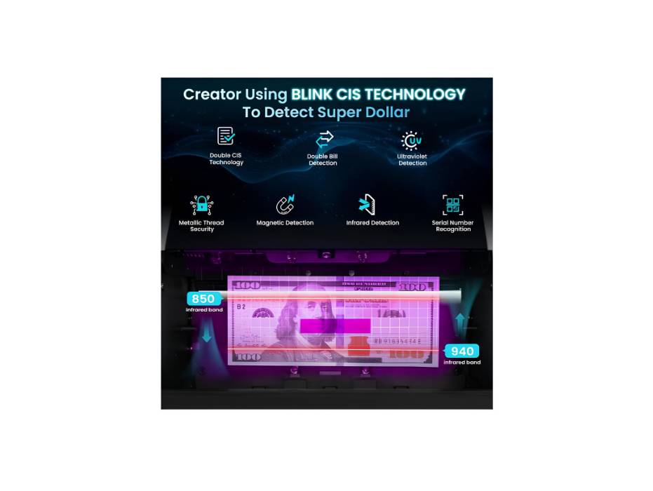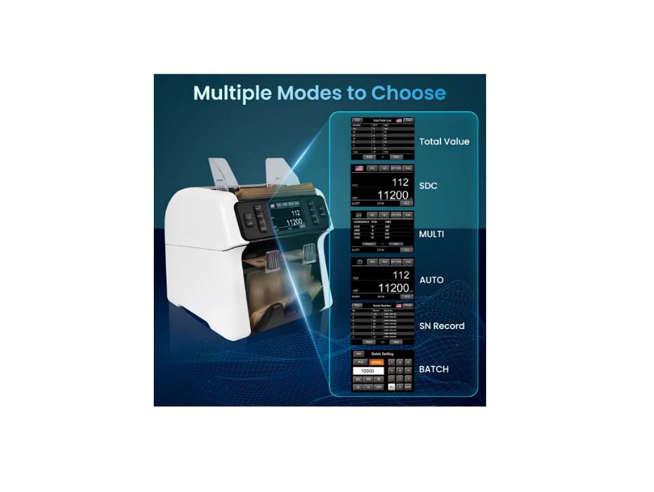 • Advanced Counterfeit Detection – Uses UV, MG, IR, and CIS technology to identify fake notes with high accuracy.