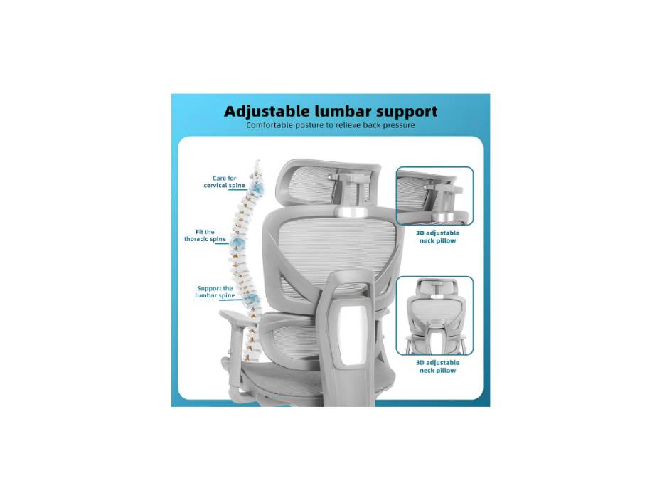 • Massage Lumbar Support: USB-powered lumbar cushion provides gentle vibration to ease lower back tension.