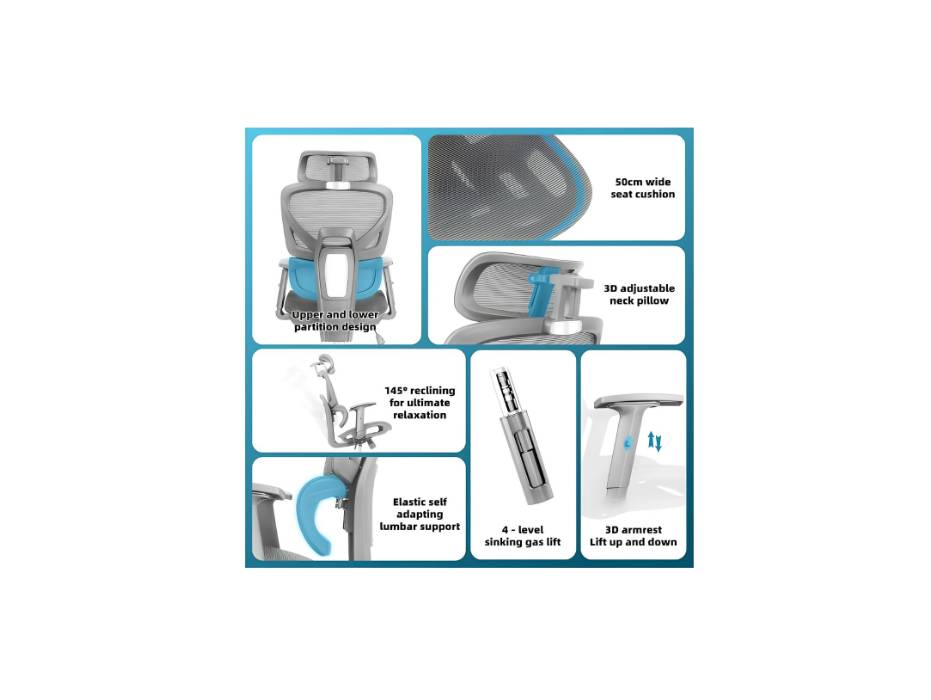 • Comfortable Armrests: Padded armrests reduce pressure on elbows and forearms.