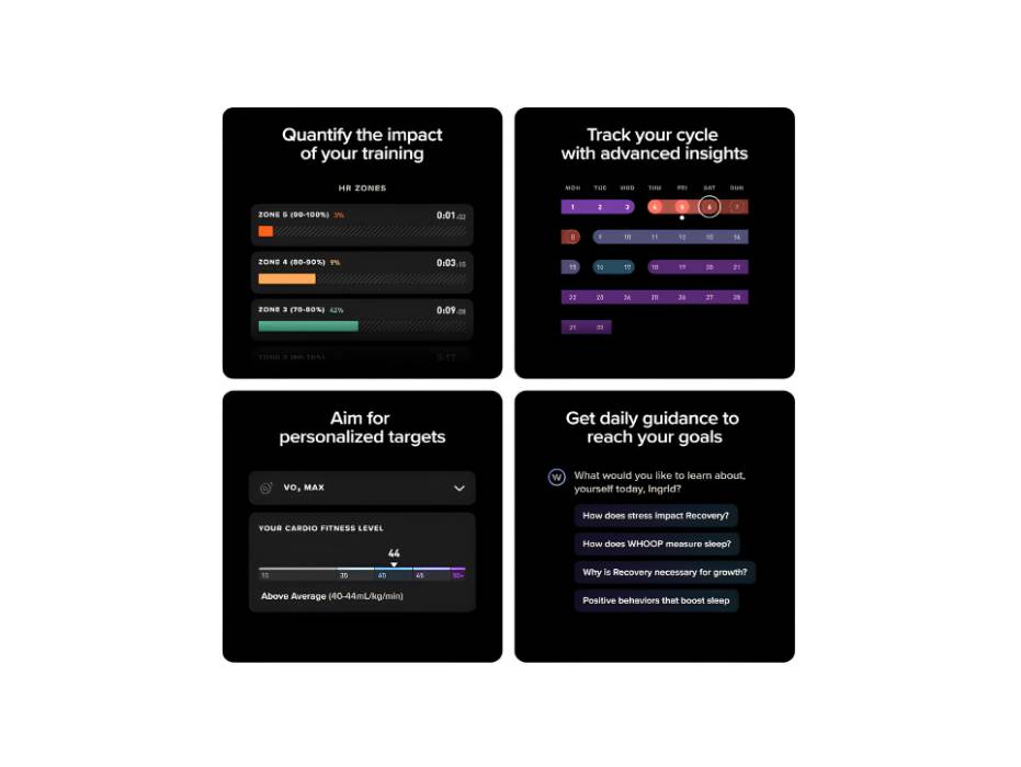 • Personalized Coaching: Daily recommendations for sleep, strain, and recovery based on your body’s real-time data.