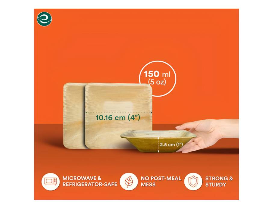 ECO SOUL 150 ml, 50 Pack Areca Palm Leaf Bowls Like Wooden Bamboo Eco Friendly