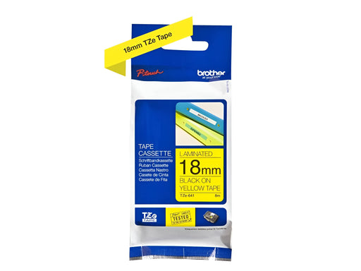 Brother P-touch Strong Adhesive Tape, Black on Yellow Size: 18mm Ref no: TZ-S641