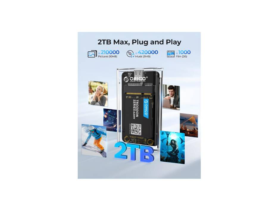Transparent Shell Design: See your drive in action with a stylish, modern clear case that also aids in heat dissipation.