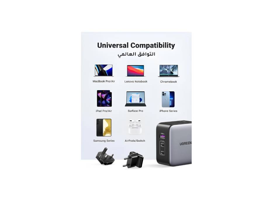 • Interchangeable US/UK/EU Plugs Snap-on adapters make it easy to switch regions—perfect for international travel across 90%+ countries.