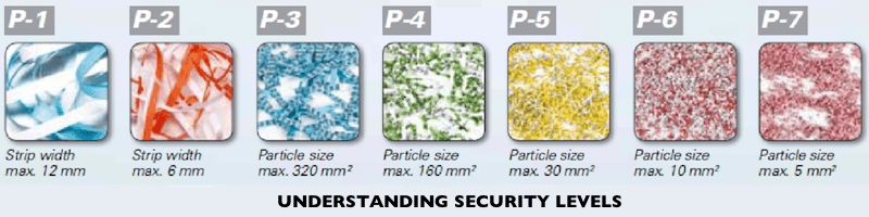While selecting a shredder, benchmark your purchase against your security level needs: