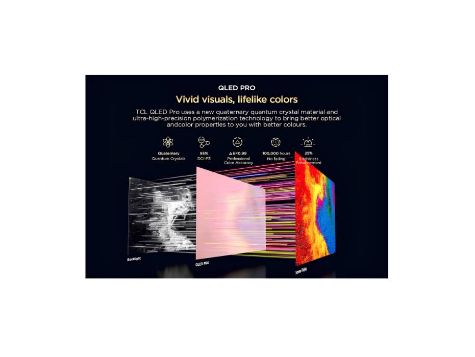 QLED Pro with Quantum Dot Technology Over a billion colors for lifelike visuals and enhanced brightness.