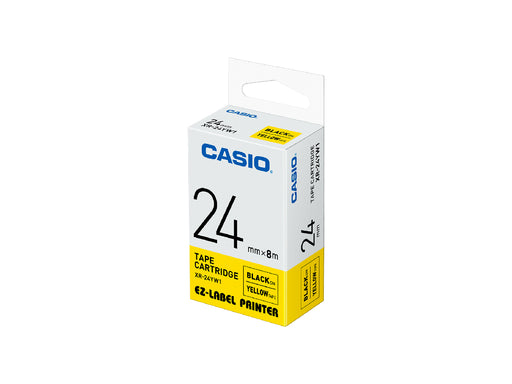 Casio XR-24YW1 Tape Cassette, 24mm X 8mm, Black on Yellow For use ONLY with Casio KL-8100, KL-8200, CW-L300, KL-7400, KL-820