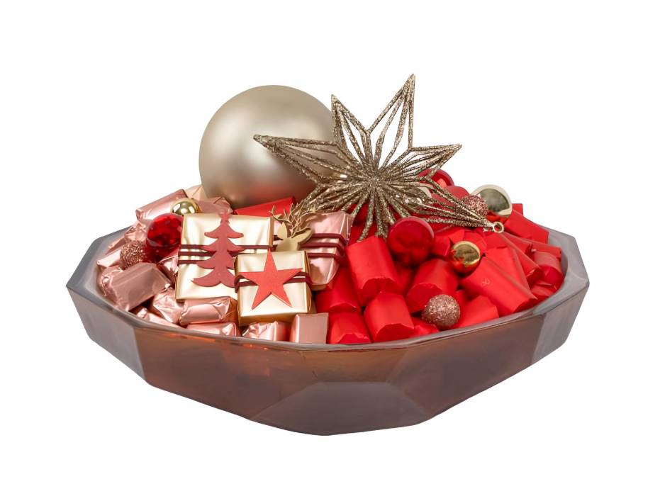 Elegant Glass Bowl: A reusable decorative bowl in stylish light brown finish, adding sophistication to your Christmas table.