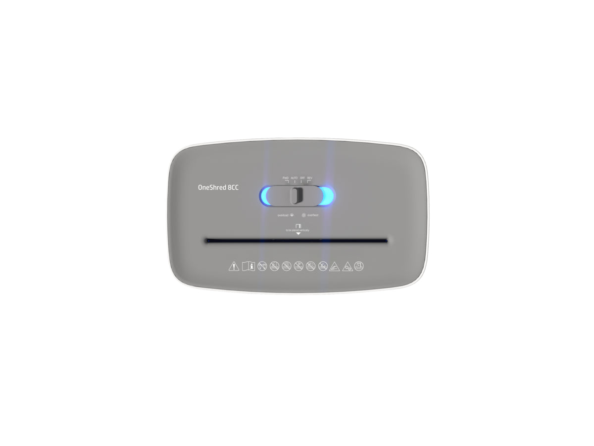 The HP OneShred 8CC is a compact, cross-cut shredder designed for home and small office use, offering reliable document disposal with enhanced security. It shreds up to 8 sheets of paper at a time into cross-cut particles (5x18mm), ensuring your sensitive information is thoroughly destroyed. Its quiet operation and user-friendly design make it an ideal choice for personal use.