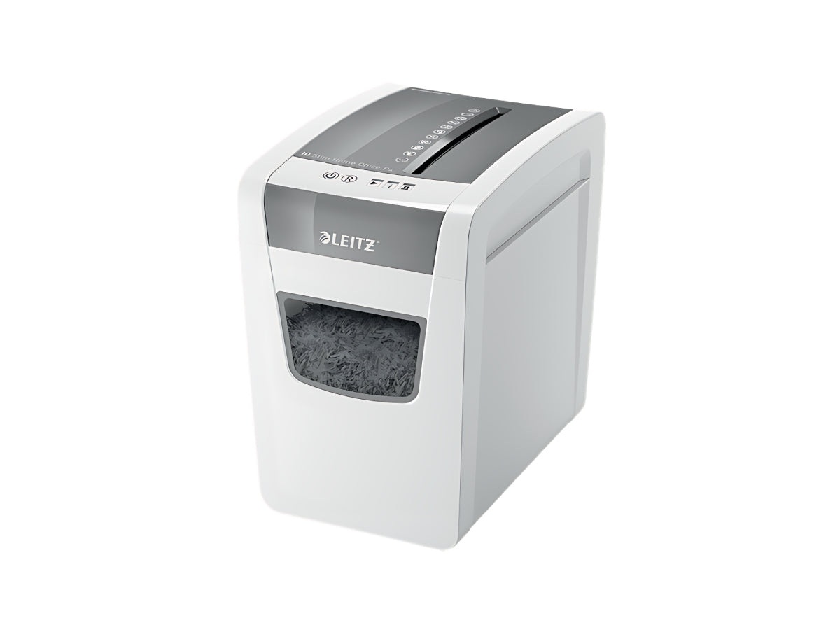 The Leitz IQ Slim Home Office Paper Shredder P4 is the perfect compact solution for home office security, offering powerful cross-cut shredding in a slim, space-saving design. It combines high security and convenience, ensuring your confidential documents, such as bills, statements, and sensitive records, are safely shredded into fine particles. With its quiet operation, anti-jam technology, and easy-to-use controls, the Leitz IQ Slim is ideal for personal or home office use without taking up much space.