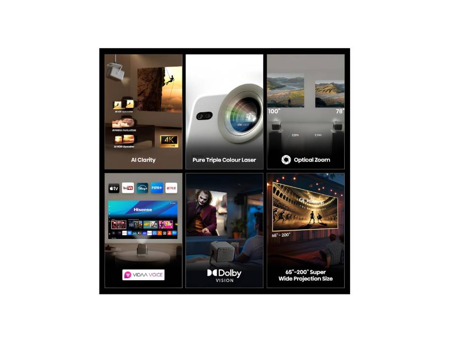 Compact & Portable Design Hisense’s smallest and lightest laser projector to date—perfect for travel, events, or flexible room setups.