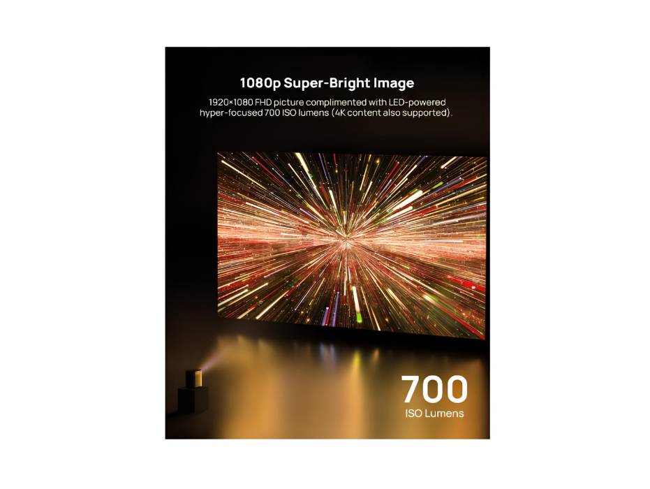 700 ISO Lumens Brightness LED-powered brilliance ensures vivid, detailed images even in ambient lighting—ideal for both indoor and outdoor use.