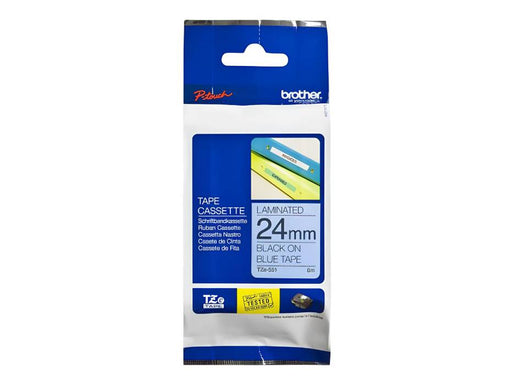 Make your labels stand out with the Brother P-touch TZ-551 Laminated Tape. Featuring a striking black-on-blue print, this tape is designed for dura...