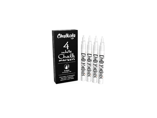 White Chalk Markers Fine Tip (4 Pack 3mm) - Wet & Dry Erase Chalk Pens