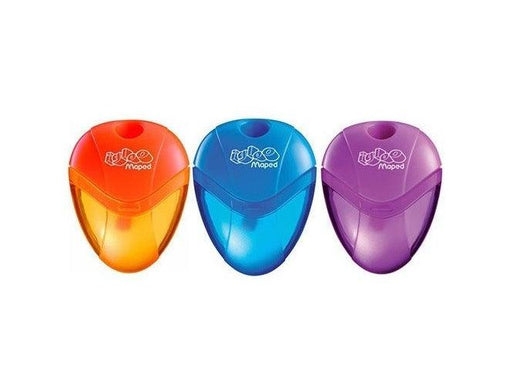Maped Elliptic Plastic Pencil Sharpener Assorted Colors 2 Holes, with practical waste container