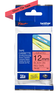 Brother P-touch 12mm TZ-431 Laminated Tape, 8 m, Black on Red