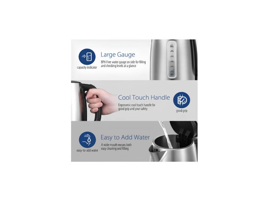 • Rapid Boil Technology (2200W): Boils up to 1.7 liters of water in just 5–7 minutes—faster and more energy-efficient than a microwave or stovetop.