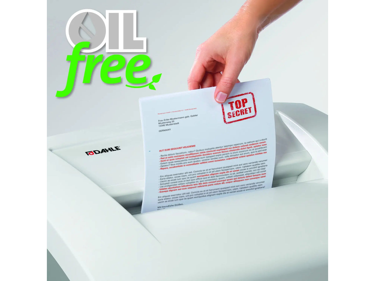 • Advanced Cross-Cut Technology: The Dahle 410L Plus utilizes a cross-cut shredding mechanism that reduces documents into small 4 x 40 mm particles, offering enhanced security (P-4 level) and ensuring that sensitive information remains confidential.