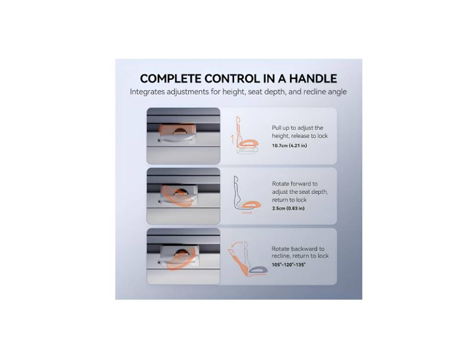 Ultra-Soft 6D Armrests Bionic armrests adjust in every direction—up/down, forward/backward, in/out, rotate, and tilt up to 35°—for personalized elbow and shoulder comfort.