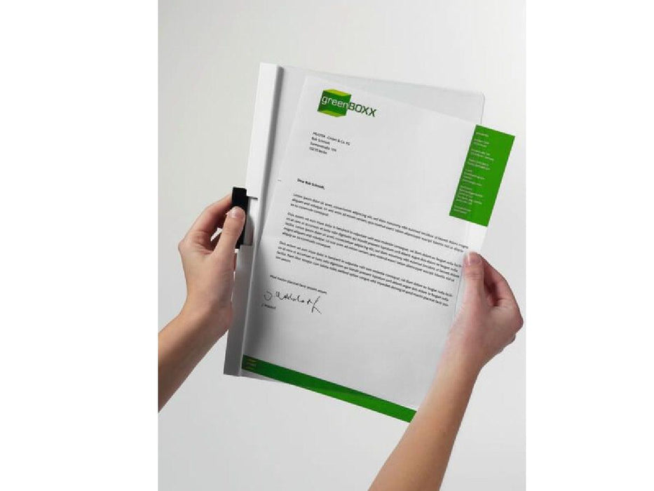 With transparent front cover and coloured back and spine. Capacity: 1-60 sheets, A4. Now with 5 year clip guarantee. DURACLIP is ideal for quotations, reports and seminar notes as well as for storing documents in the office and home.