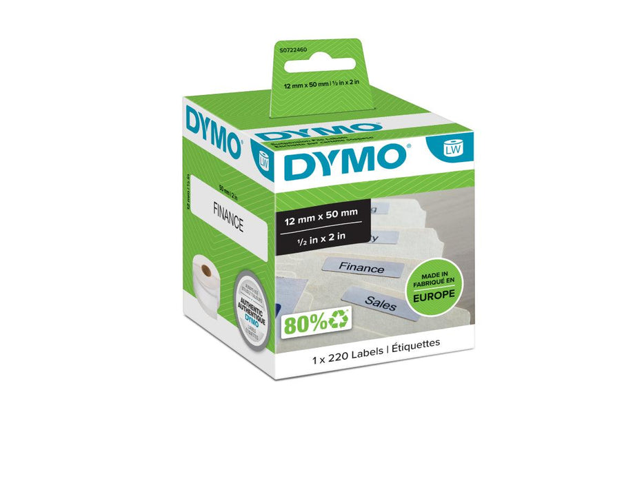 DYMO (99017) Suspension File Labels, White Paper, 50 x 12 mm, [220 Labels/Roll]