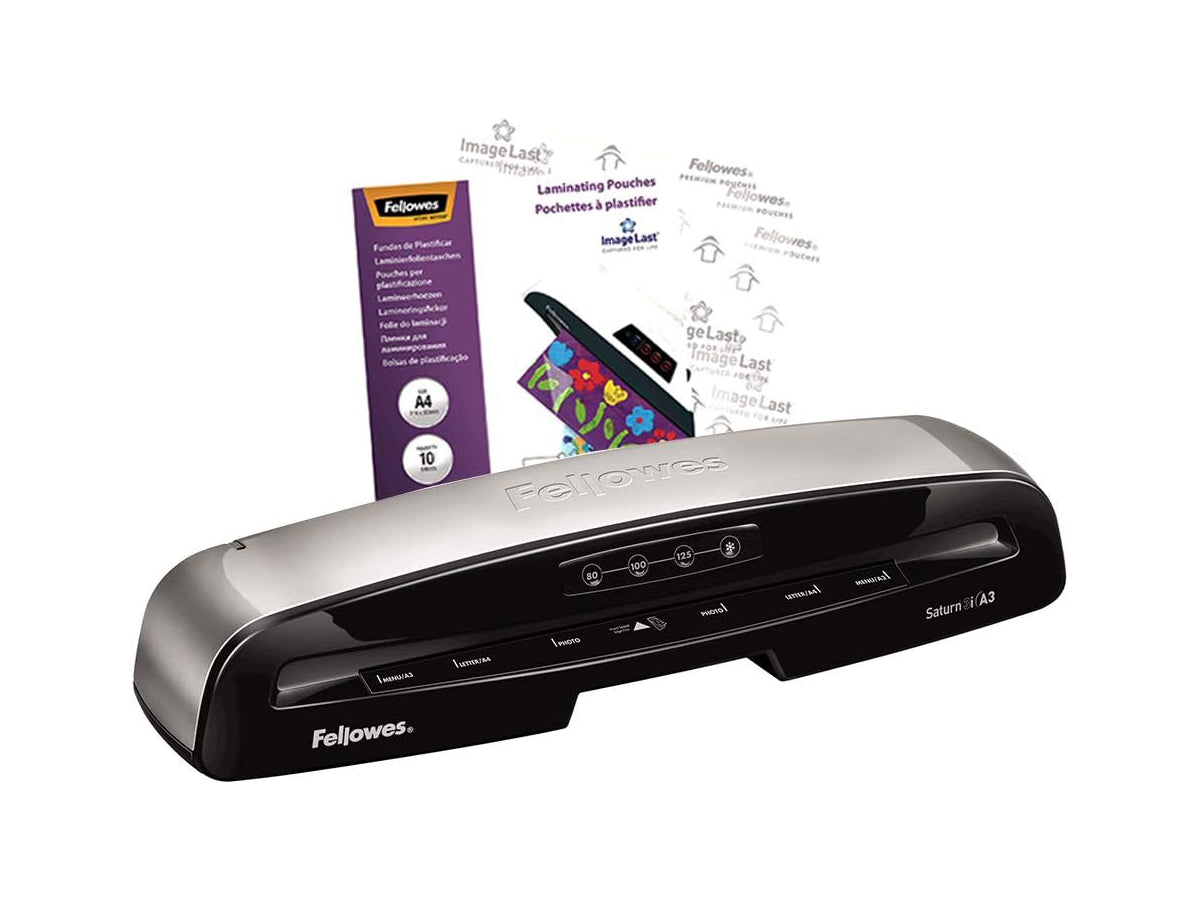 The Fellowes Saturn A3 Small Office Laminator is a versatile, high-performance laminating machine ideal for small offices, schools, or home offices. With quick warm-up, jam-free operation, and the ability to laminate both A3 and A4 documents, this laminator provides reliable, professional results every time, protecting and enhancing your important papers.