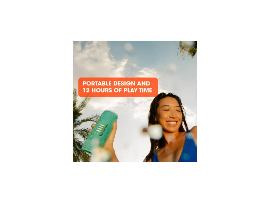 The beat goes on with the JBL Flip 6 2-way speaker system, engineered to deliver loud, crystal clear, powerful sound. Its racetrack-shaped woofer delivers exceptional low frequencies and midrange, while a separate tweeter produces crisp, clear high-frequencies. Flip 6 also features optimized dual passive radiators for deep bass, fine-tuned with using Harman's advanced algorithm.