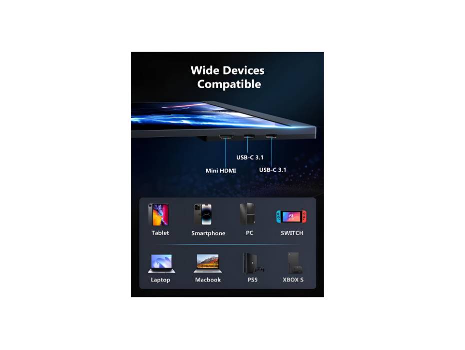 Dual USB-C + Mini HDMI Input:Offers flexible, driver-free connectivity to laptops, gaming consoles (PS5/PS4, Xbox Series X/S, Switch), smartphones, and more.