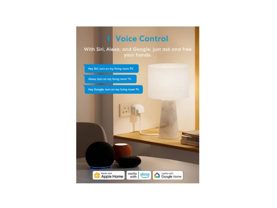 Voice & Remote Control Hands-free operation with Siri, Alexa, or Google Assistant. Manage appliances anytime, anywhere via the Meross app.