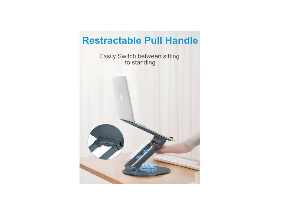 Proffisy Laptop Stand, Aluminum Ergonomic Sitting/Standing Laptop Riser with 360° Rotating Base, Foldable, Adjustable Height (Grey)