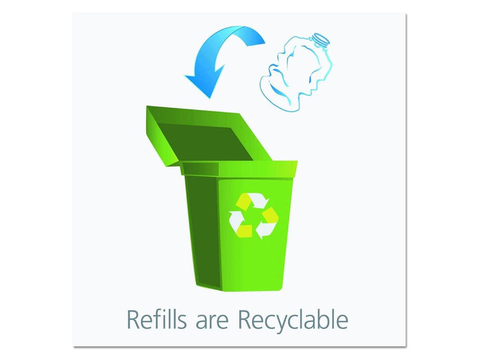 - The refill is exposed for at-a-glance monitoring of product level and easy servicing