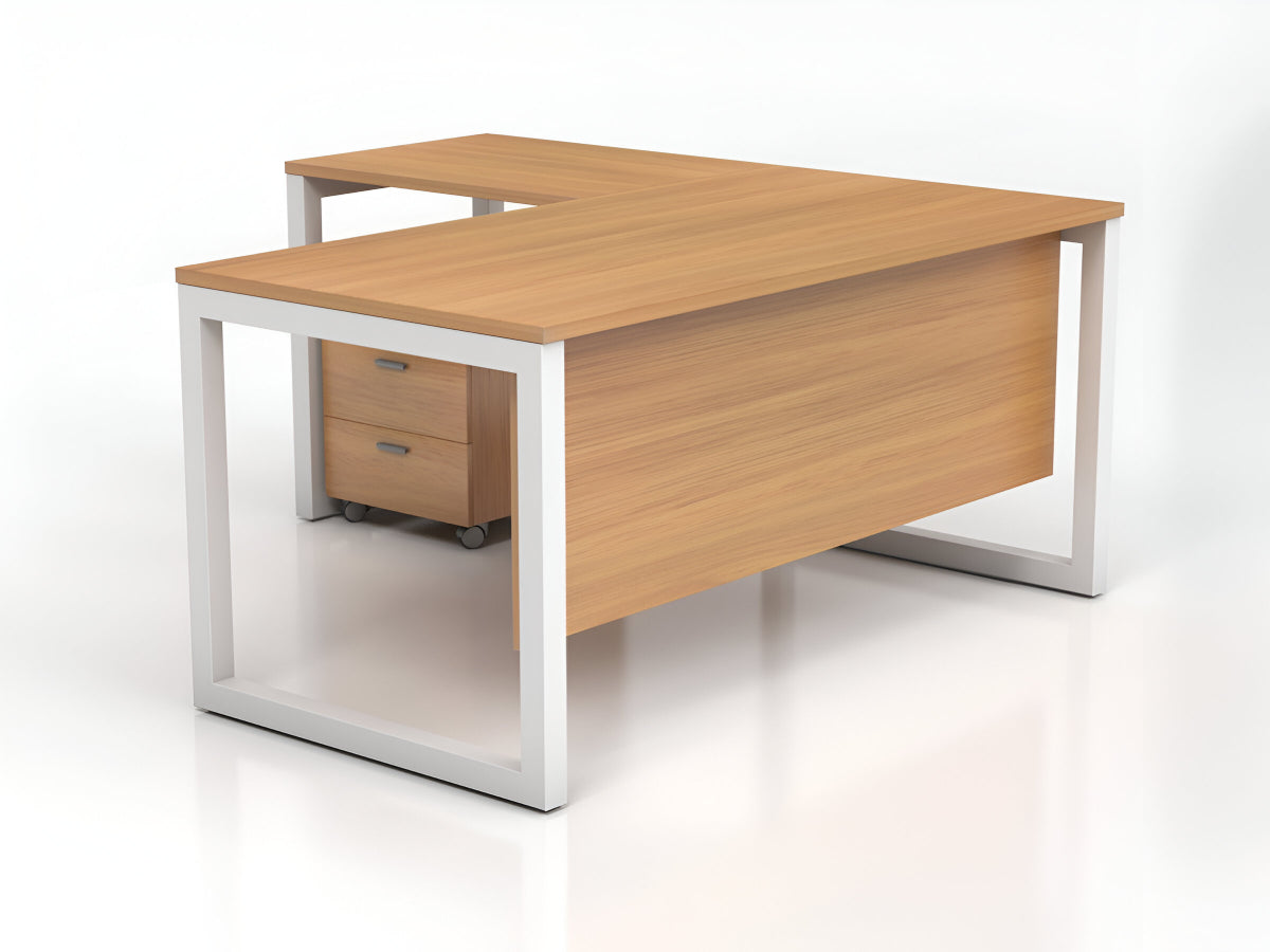 Pyramid L shape Desk with Mobile pedestal 3Drawer, Size - Top: 160L x 80D x 75H / Side:80L x 45D x 75H cm