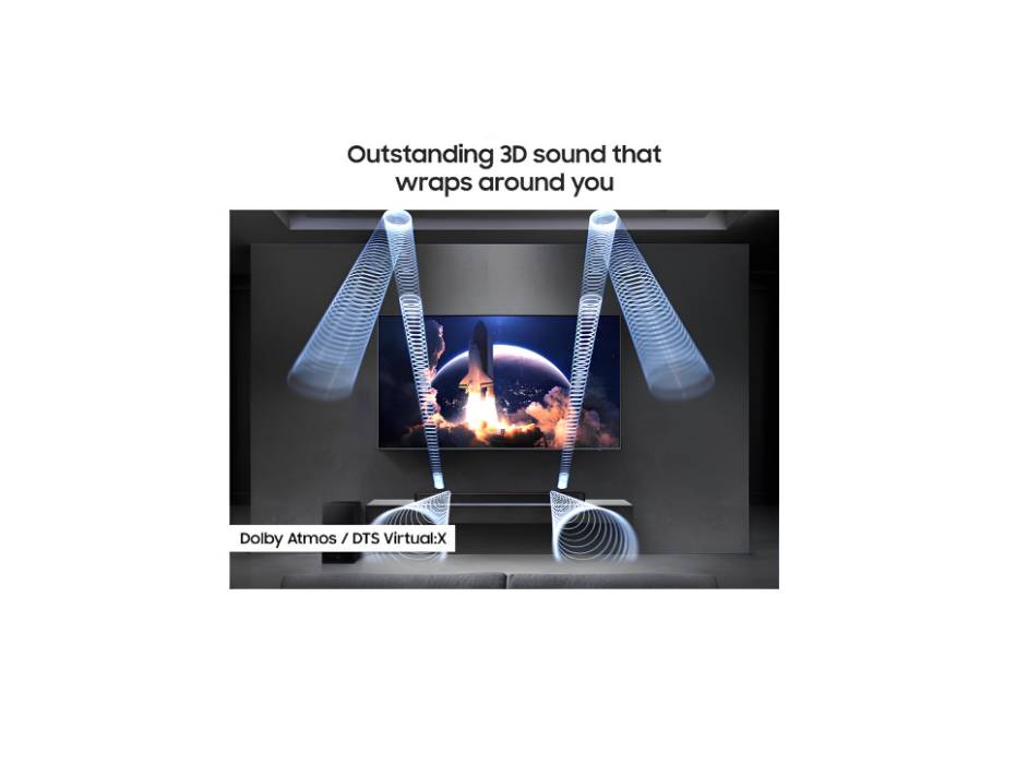 Q-Symphony-Pair seamlessly with compatible Samsung TVs to create a synchronized audio experience, combining both TV and soundbar speakers for a fuller, more immersive soundstage.