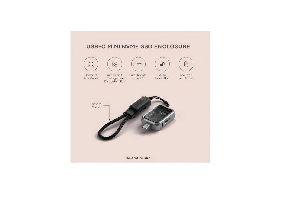 Satechi M.2 NVMe Mini SSD Enclosure with 10Gbps Transfer Speed, Up to 2TB, Active Auto Cooling,USB-C Case, Supports NVMe 2230
