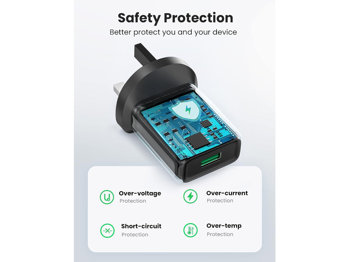 The UGREEN 18W USB Fast Charger with QC 3.0 technology is the ultimate solution for fast and efficient charging. Its compact design, universal compatibility, and smart charging capabilities make it an essential accessory for both travel and everyday use. Trust UGREEN to keep your devices powered up and ready to go with reliable and high-speed charging performance.