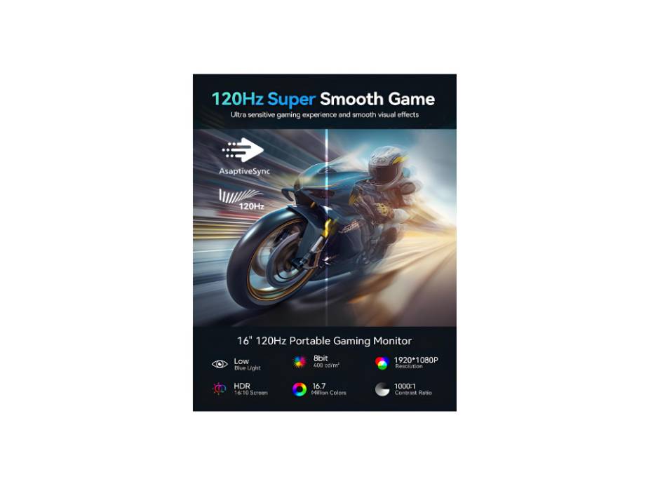 UPERFECT 16” Portable Gaming Monitor | 120HZ, HDR | 400Nits |1080P IPS | Ultra-Slim & Lightweight | Travel External Second Screen for Laptop, PC, Game Console