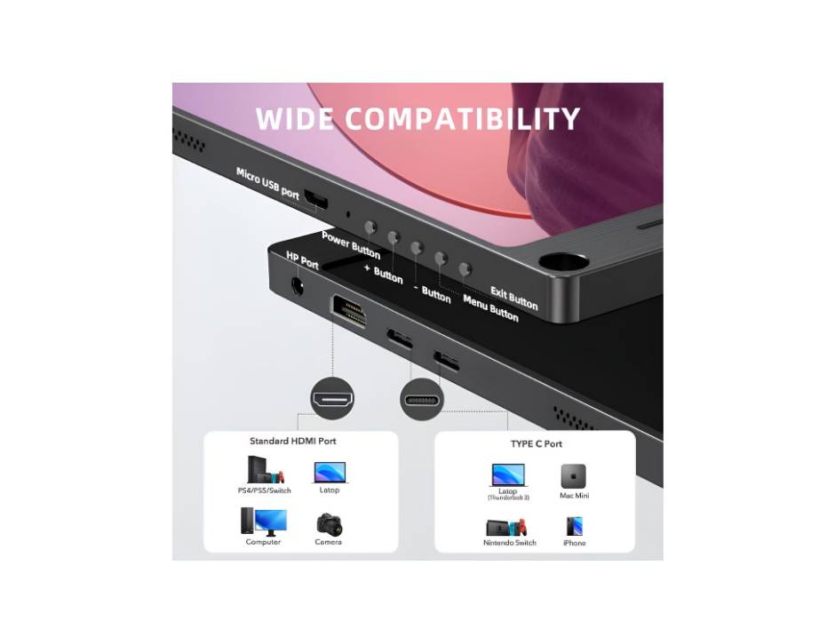 Enhance your productivity and entertainment anywhere with the UPERFECT 15.6” Portable Monitor. Featuring a vibrant 1920x1080 Full HD IPS screen, HDR technology, and versatile connectivity, this ultra-portable display is perfect for gaming, working, or extending your laptop screen on the go.