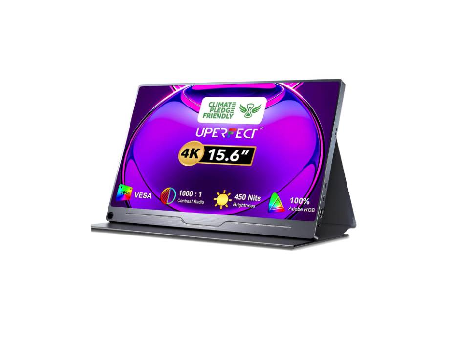 UPERFECT Truely 4K Computer Monitor, 15.6" UHD FreeSync 100% AdobeRGB 450 Nits Brightness HDR IPS Speaker Eye Care Game Display 2 Type-C