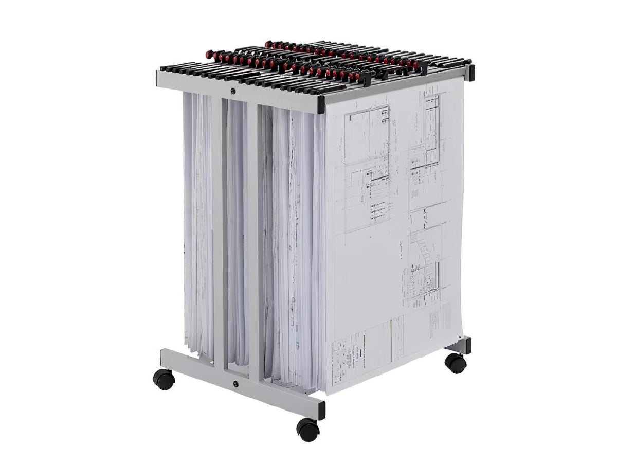 The Vista Plan Top Load Drawing Trolley (A1) offers a practical and durable solution for storing and transporting large-format A1 drawings, plans, and blueprints. With a capacity to hold up to 20 A1 hangers (sold separately), this trolley ensures easy organization and access. The robust steel construction, coupled with smooth-rolling castors, provides excellent mobility and stability, making it ideal for architects, engineers, and designers who need to manage large quantities of documents efficiently.